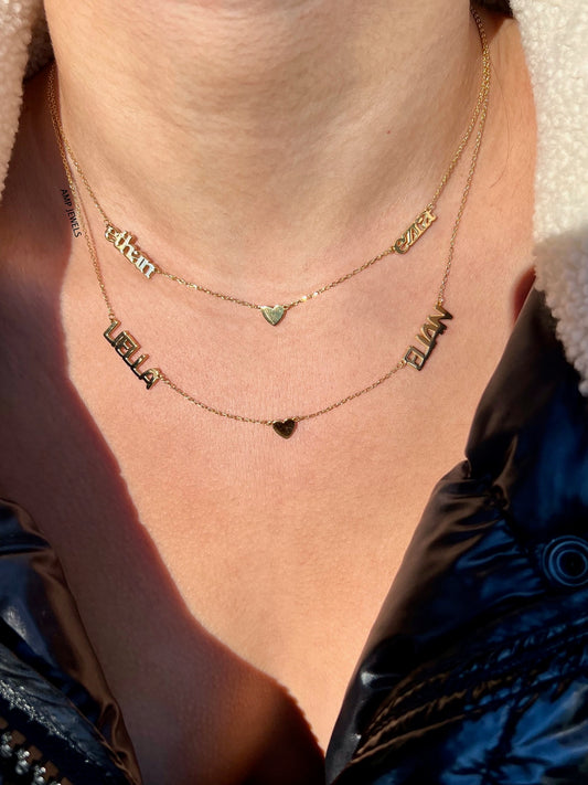 Double Name with Heart Necklace